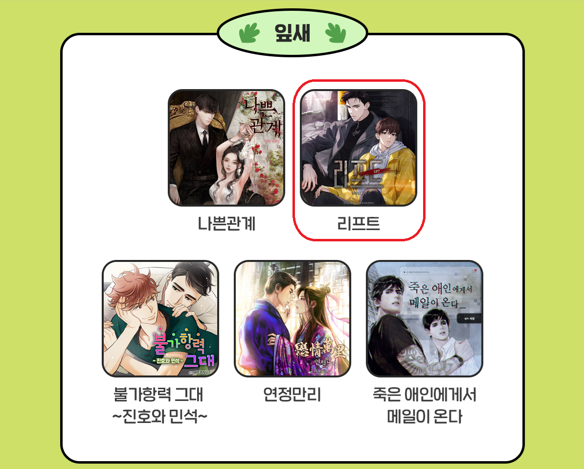 리프트가 BL 요소가 하나도 없는 작품이었으면 분명 둘의 2차 창작이 활발했을 것임 ㅋㅋ
